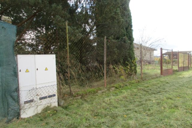 Na hranici pozemku se nachází přípojkový pilíř na elektřinu, vodovod a kanalizace cca 5 m od hranice pozemku.